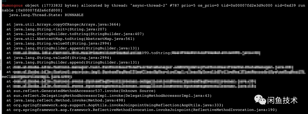 通过排查上述调用栈的代码,发现是一句日志打印的代码引发的血案。具体现场如下代码段所示: