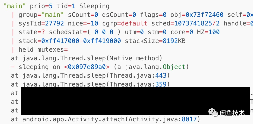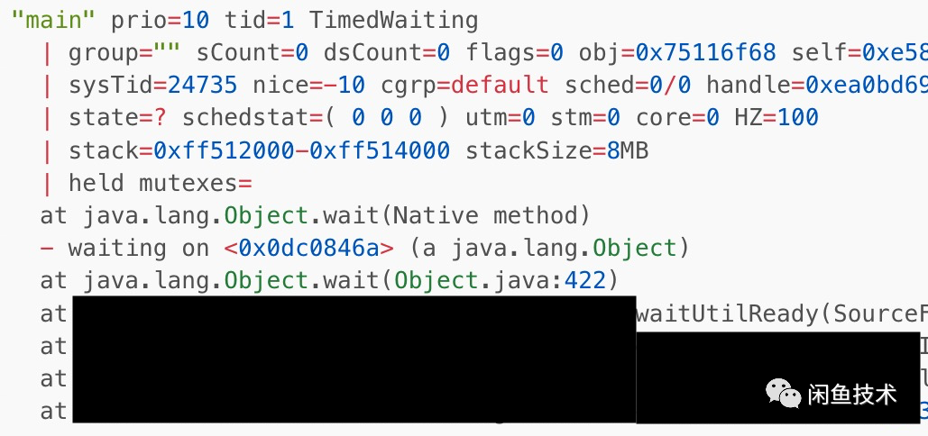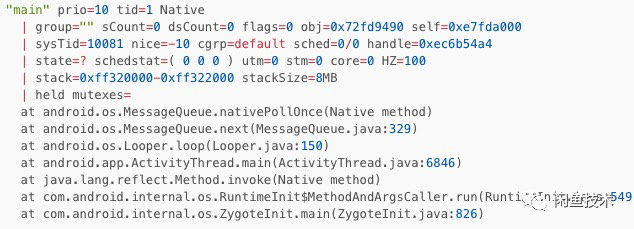 Crash sdk在监听SIGQUIT信号后,会调用art虚拟机内部dump堆栈的接口,获取ANR traces信息,包含ANR进程中所有线程的堆栈,据此可以分析出是否有主线程耗时、死锁、主线程等待锁、主线程sleep等问题。