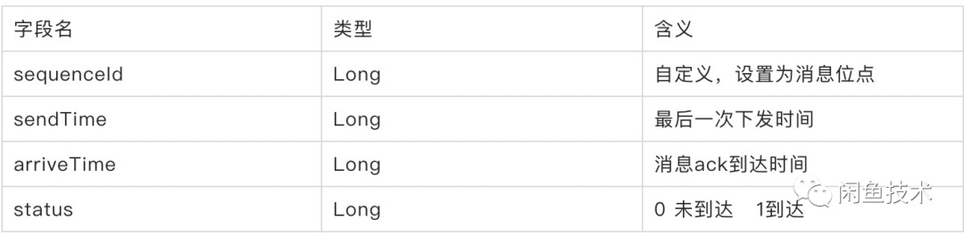 我们采用阿里云表格存储TimeLine模型来存储下行消息的到达状态,阿里云表格存储是阿里云自研的多模型结构化数据存储,提供海量结构化数据存储以及快速的查询和分析服务。表格存储的分布式存储和强大的索引引擎能够支持PB级存储、千万TPS以及毫秒级延迟的服务能力。而Timeline 模型是针对消息数据场景所设计的数据模型,它能满足消息数据场景对消息保序、海量消息存储、实时同步的特殊需求,在IM、Feed流等消息场景应用广泛。我们给每个用户设备定义一个TimeLine,timeline-id定义为userId_deviceId,sequenceId自定义为消息位点,存储结构如下: 每通过accs成功下行一条消息,则插入到接收用户设备的TimeLine中,收到ack后根据消息id更新消息到达状态,同时由于重试动作只发生在下行消息后较短的一段时间内,所以我们设置一个比较短的全局过期时间即可,避免数据膨胀。延迟重试设计