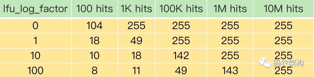 推荐设置 lfu_log_factor 为10.