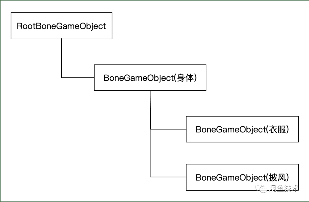 骨骼(Bone):骨骼是骨骼动画的基本组成部分,骨骼之间存在父子关系,父亲的变换会影响到孩子。一般通过骨骼的旋转、缩放、平移等变换即可形成动画。