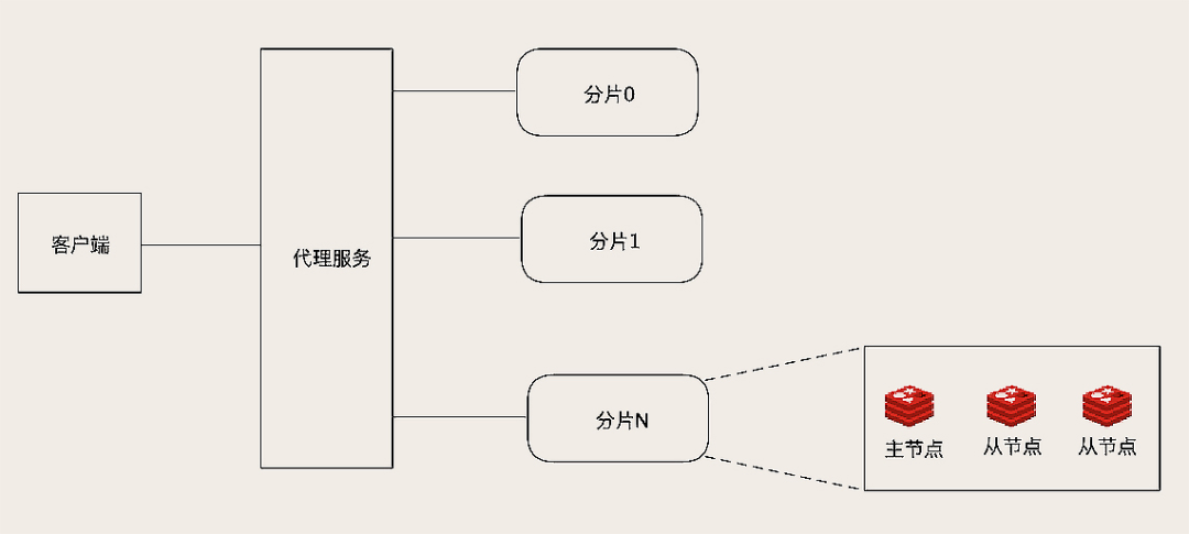 一种是基于代理的方式,在客户端和 Redis 节点之间,还需要增加一层代理服务。这个代理服务有三个作用。
