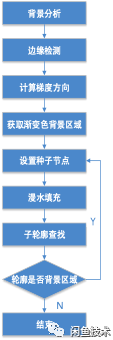1判断背景区块,通过sobel,lapacian,canny等边缘检测方法计算出梯度变化方向,从而得到纯色背景和渐变色背景区域。