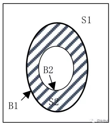 二值图像形态学膨胀处理后,首先提取连续边缘的外层轮廓。如下图所示,对于只有0和1的二值图像,假设S1为像素值为0的一堆背景点,S2为像素值为1的一堆前景点,外层轮廓B1为一堆前景点最外围的点,内层轮廓B2为一堆前景点最内部的点。通过对二值图像进行行扫描给不同轮廓边界赋予不同的整数值,从而确定轮廓的类型以及之间的层次关系。提取出外层轮廓后通过计算轮廓包含的面积大小丢弃面积较小的外层轮廓,输出第一步候选轮廓。