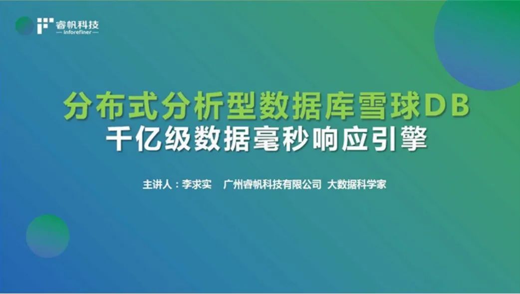 8月27日,在由中国国际大数据产业博览会组委会主办的2020“数博发布”活动上,睿帆科技自主研发的“分布式分析型数据库雪球DB”正式发布,睿帆科技大数据科学家李求实博士在活动中为大家详细介绍了“分布式分析型数据库雪球DB”的功能、核心优势及其应用落地场景。