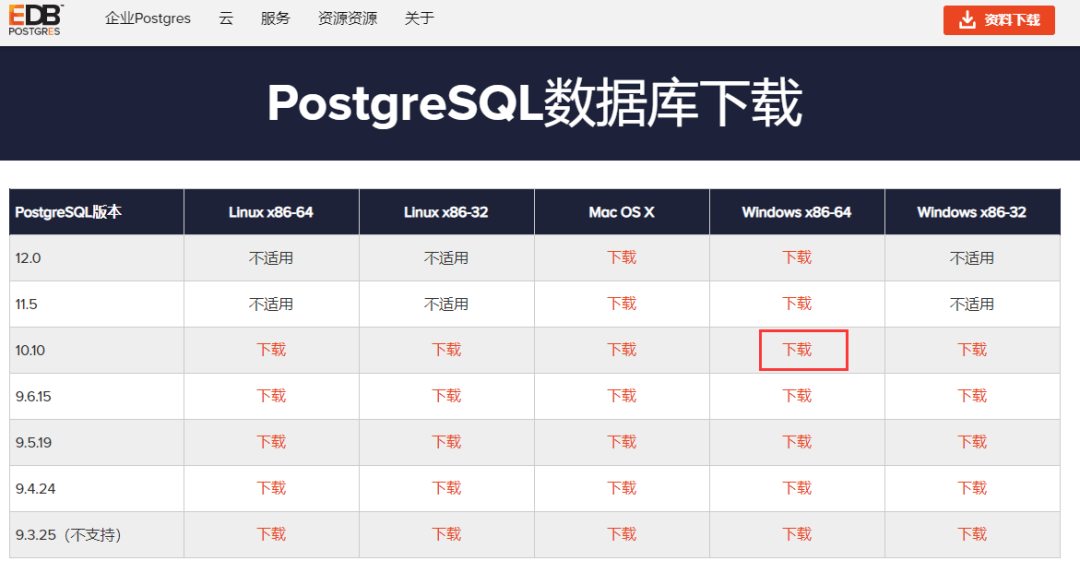 选择好相应的电脑系统和PostgreSQL数据库版本后,点击“下载”: