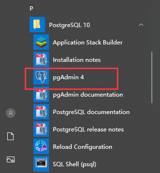 9、安装完成后,在桌面左下角的搜索框中找到pgAdmin4,双击打开: