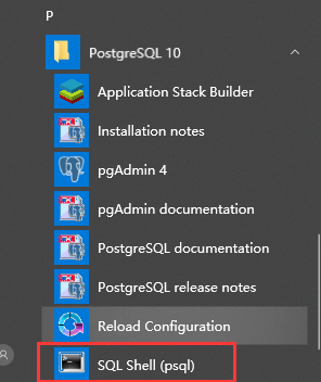12、最后在桌面左下角的搜索框中找到SQL Shell(psql),双击打开。检查是否安装成功,以及运行一次:
