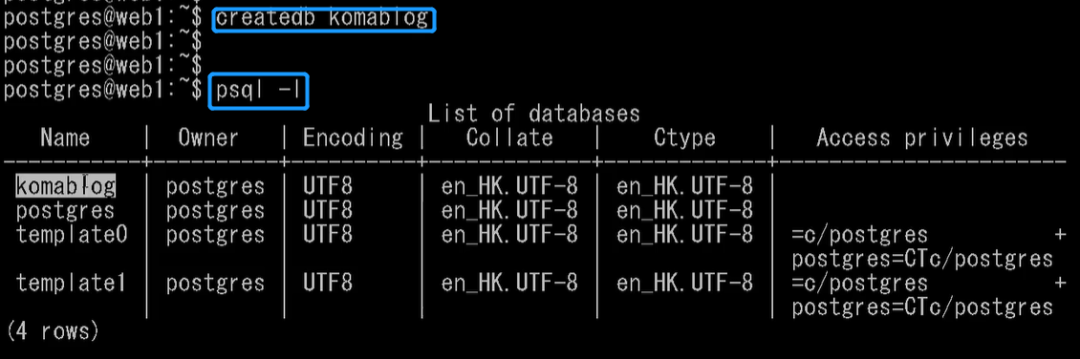 (1)安装后系统默认建立一个postgres用户,切换到默认用户,终端输入 :sudo su postgres