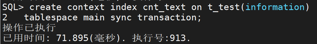 create context index cnt_text on t_test(information)tablespace main sync transaction;