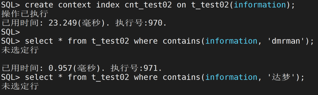create table t_test02 as select * from t_test;create context index cnt_test02 on t_test02(information);