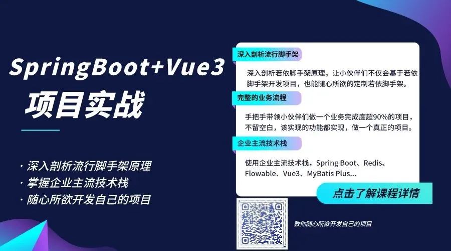 松哥最近正在录制 TienChin 项目视频~采用 Spring Boot+Vue3 技术栈,里边会涉及到各种好玩的技术,小伙伴们来和松哥一起做一个完成率超 90% 的项目,戳戳戳这里-->TienChin 项目配套视频来啦。