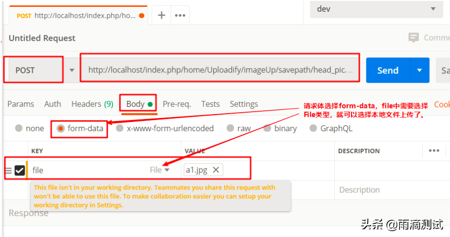 http://localhost/public/upload/user//head_pic//ba51d1c2f7f7b98dfb5cad90846e2d79.jpg 。可以看出这个接口的URL后半部分其实是上一个接口返回的url的值 。那么这俩个接口就产生了关联。那么在postman 可以通过以下三步完成这俩个接口的关联实现 。