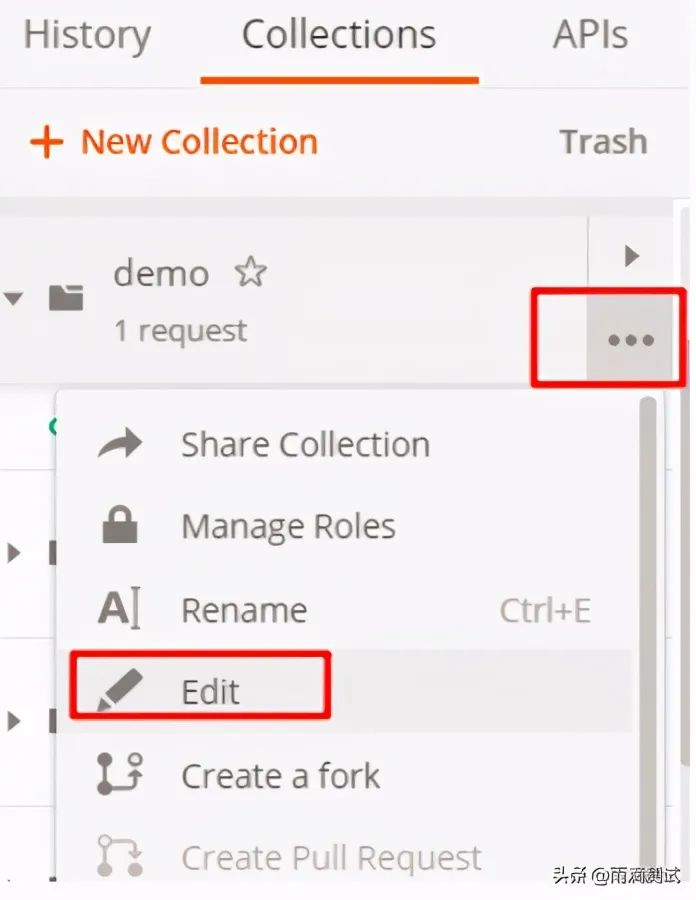 选择一个集合,打开查看更多动作(「...」)菜单,然后点击编辑 。选择“变量”选项卡以编辑或添加到集合变量。