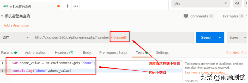 如果在「请求参数中」获取变量,无论是获取全局变量,还是环境变量,还是集合变量,获取的方式都是一样的编写规则:{{变量名}} 。