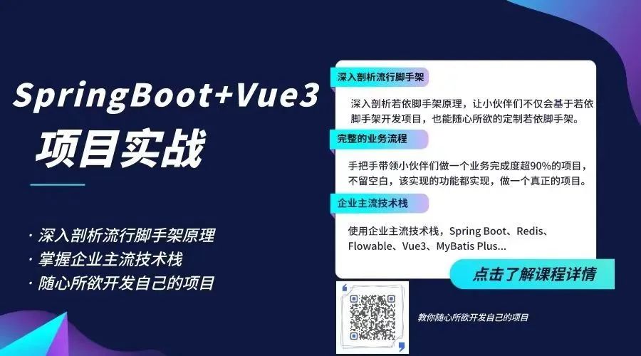 松哥最近正在录制 TienChin 项目视频~采用 Spring Boot+Vue3 技术栈,里边会涉及到各种好玩的技术,小伙伴们来和松哥一起做一个完成率超 90% 的项目,戳戳戳这里-->TienChin 项目配套视频来啦。
