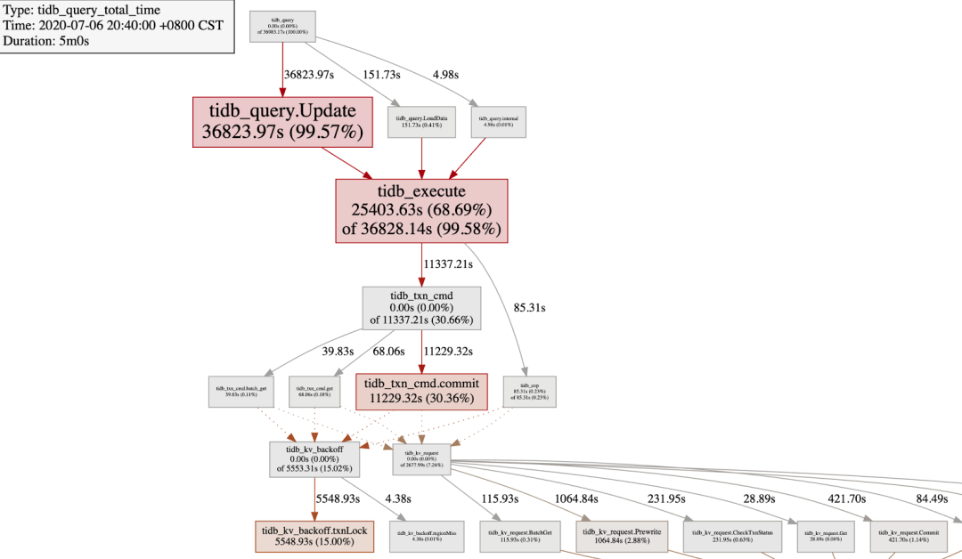 1. tidb_query.Update 表示 update 语句的执行耗时占总查询耗时的 99.59%;