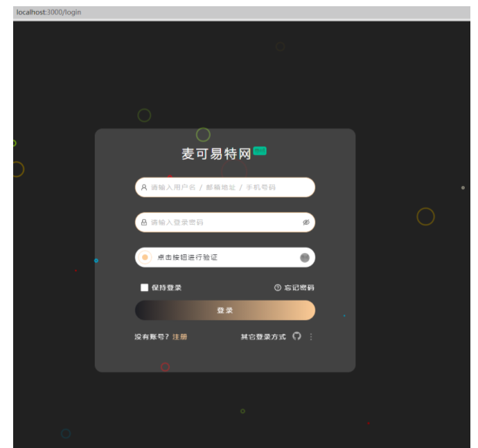 登录也非常简单,引入组件即可。不过现在定制性并没有那么好,背景图,表单等可以通过传参的形式自行定制,但登录页面的布局不支持定制,如下图所示。