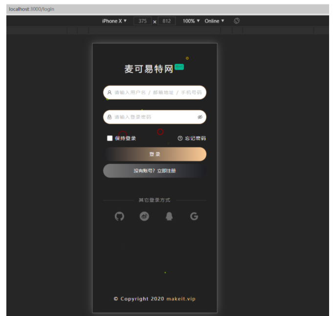 登录页面 - 手机端的显示效果