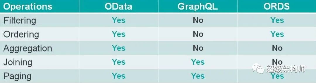 图 3 突出显示了通过开放标准接口访问数据的通用标准。OData 全面支持所有这些查询功能。您可以使用 GraphQL 和 ORDS 执行其中一些操作,但它们没有标准化或以实现互操作性的方式记录。