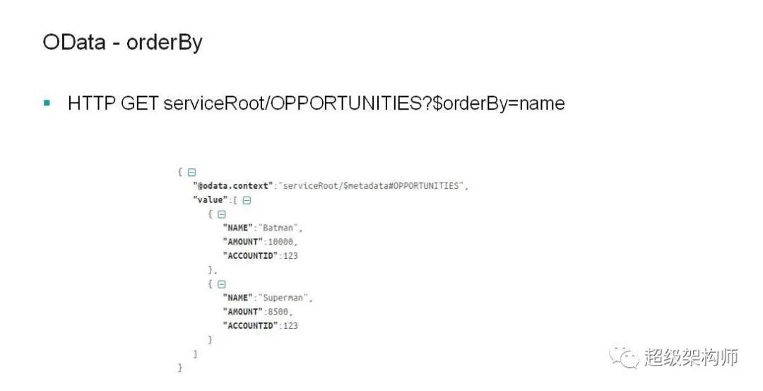 相比之下,当您使用 orderBy 查询参数时,OData 会准确地告诉您它的行为方式,因为它的行为被定义为规范的一部分。