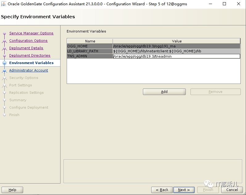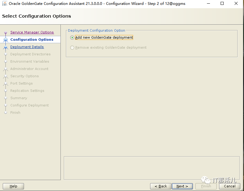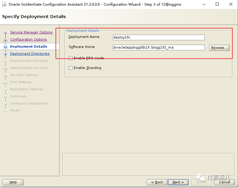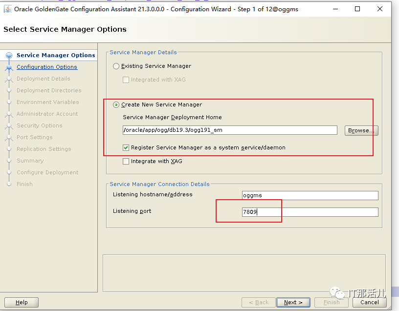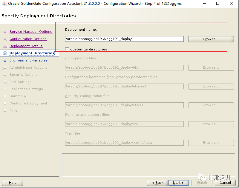 一个是OGG_HOME,软件安装路径与经典架构保持一致,简称MA; 一个是服务管理路径,微服务架构采用服务方式管理,简称SM,可以管理多个部署.例如for oracle 11g、oracle 12c等; 一个是部署路径,微服务采购云操作方式,所有部署与管理都是通过web其中管理,简称DEPLOY。