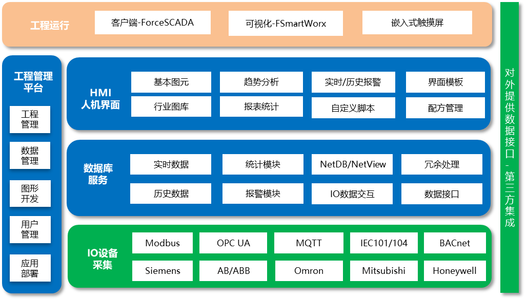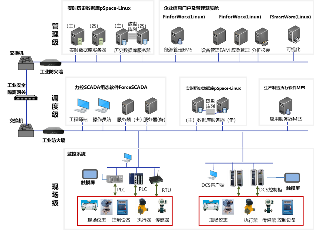 ForceSCADA为企业用户的工业信息化应用提供基于国产操作系统下部署的SCADA软件平台,该SCADA平台的设计涵盖从现场监控站到调度中心,为企业提供从下到上的完整的生产信息采集与集成服务,从而为企业综合自动化、工厂数字化及完整的“管控一体化”的解决方案提供支撑平台。