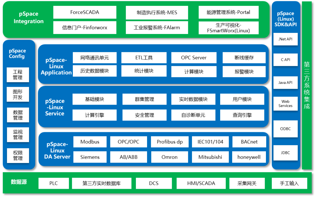 力控企业级实时历史数据库pSpace-Linux 可用于工厂过程的自动采集、存储和监视,提供工厂模型,生产运营管理、设备运行管理、历史追忆、生产报表等多种调度管理模块。