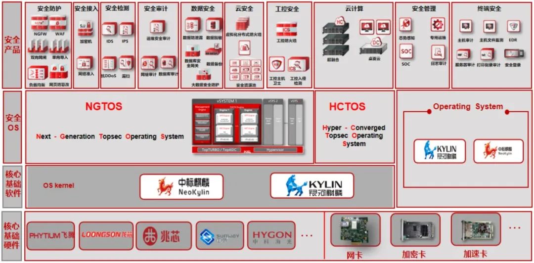 麒麟软件致力于打造中国操作系统核心力量,以安全可信操作系统技术为核心,面向通用和专用领域打造安全创新操作系统产品和相应解决方案,能够同时支持飞腾、鲲鹏、龙芯、申威、海光、兆芯等国产CPU,为客户提供完整的国产化解决方案。同时,形成了服务器操作系统、桌面操作系统、嵌入式操作系统、麒麟云、操作系统增值产品为代表的产品线。