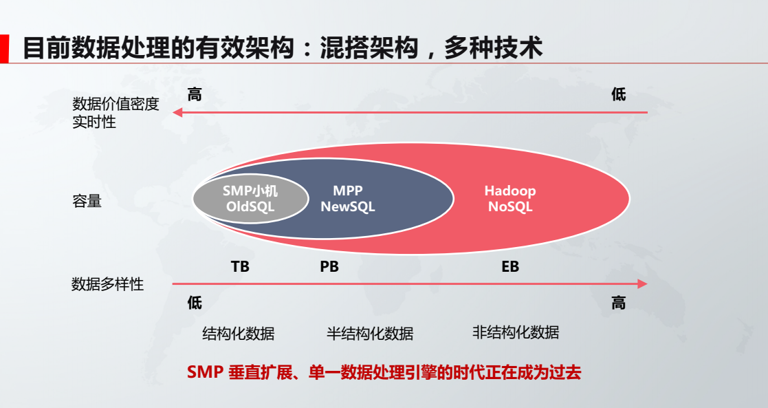 目前随着国产化的需求,企业数据库处理也面临着三座大山:第一是“过去”:业务数据孤岛;其次是“现在”:MPP数据库解决了