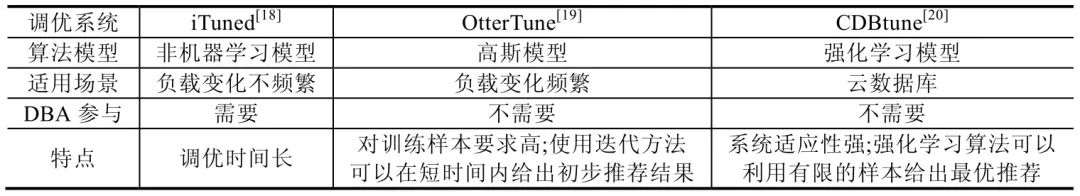 近几年,云数据库的应用更加广泛,但由于样本数量少、配置参数多等诸多问题,使得数据库参数调优变得十分困难.而且云数据库配置调优本身比RDBMS 繁琐,这就使得数据库管理员的任务更加艰巨.文献[20]实现的CDBtune 是一个端到端的云数据库自动调优系统,它采用试错策略,通过有限的样本学习参数设置,完成参数初始化,减小了对大量高质量样本采集的需求.而且系统采用强化学习中的奖励反馈机制,实现端到端学习,在高维连续空间中寻找最优配置,加快模型的收敛速度,提高了在线调优的效率.系统收到用户的在线调优请求后,会在大约150s 内从用户处收集查询工作负载,获取当前配置参数并执行查询,得到当前性能,然后使用离线训练的模型进行在线调优.最后给出参数配置.如果优化过程终止,系统还会更新强化学习模型和内存池.