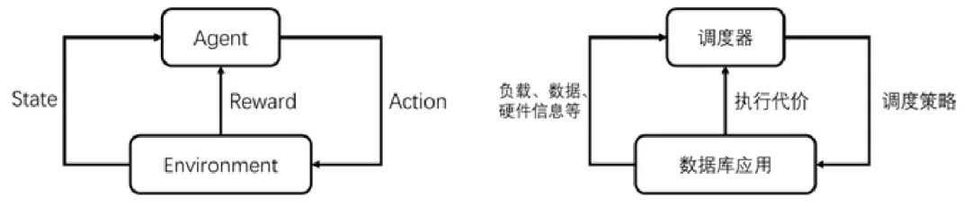由于强化学习非常适于随机、有延时、有交互的学习场景,因此强化学习的方法对于查询执行过程中的自适应查询处理和查询调度有天然的适用性.图6 展示了强化学习和基于强化学习的查询调度的一般过程.通过探索-利用(exploration-exploitation)的学习方式,这些方法可以发现和学习到更好的策略,服务于查询执行过程中的自适应查询处理和查询调度优化.