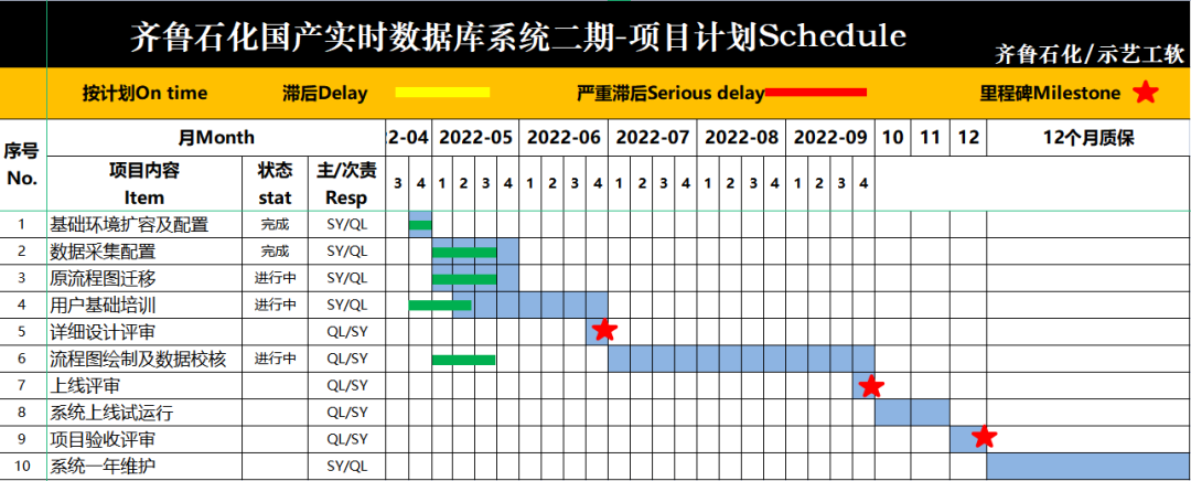 国产实时数据库替代(二期)项目2022年4月开工建设,已经完成塑料厂、橡胶厂、氯碱厂、供排水厂、储运厂、腈纶厂、热电厂的数据采集和流程图转换工作,并进行了基础用户培训,目前各厂正在进行流程图整理及绘制工作。