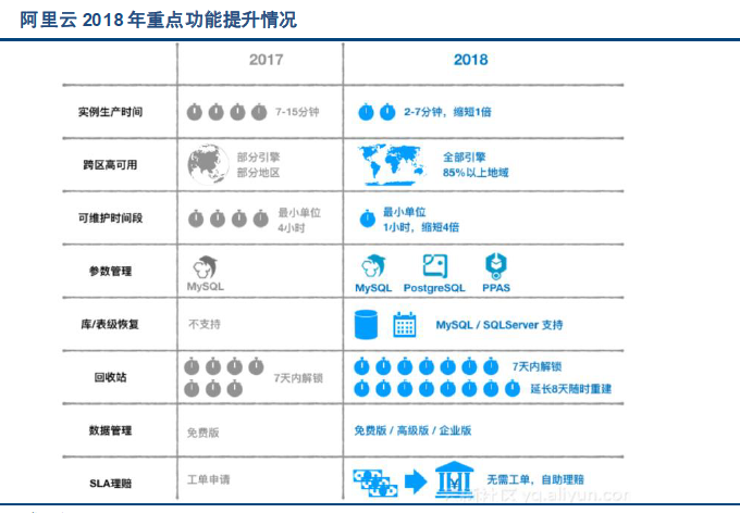 云数据库已经不仅仅是简单地完成数据库在云资源中的搭建,数据库曾经是IT 系统中最昂贵的投入之一,对企业高管(CXO)而言,更加灵活的生命周期管理,可以实现成本的合理投入及灵活管理。对DBA 技术人员而言,更高的安全性、更全面的监控能力、更便捷的运维方式,将改变DBA 在企业的工作模式及地位。阿里云始终致力于从全方位提高云数据库的性能,在2018 年,阿里云进行了重点功能提升,这些能力几乎覆盖企业IT 系统生命周期的所有场景的自主化管理,进一步便捷企业高管、DBA 技术人员等各岗位的工作人员。
