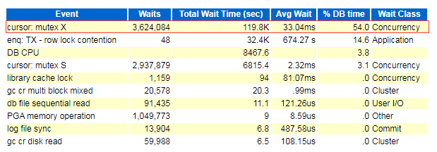 发现cursor:mutex X异常等待事件占了54%的DBTIME