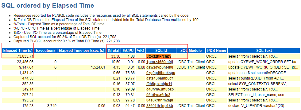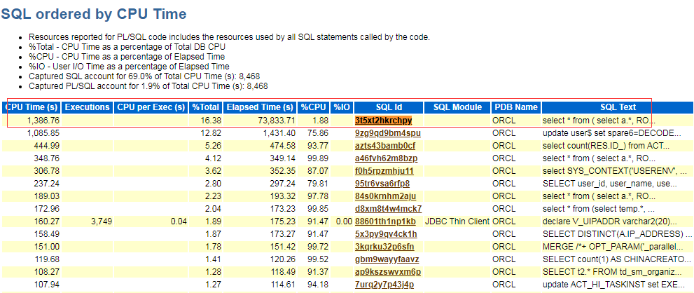 从以上图我们可以看到SQL_ID:3t5xt2hkrchpy执行时间及CPU消耗TOP1,其SQL及其他SQL的版本数都很高。