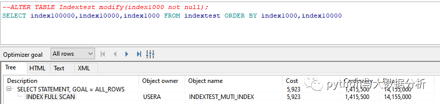 SQL> CREATE INDEX indextest_muti_index on indextest(index1000,index10000,index100000);