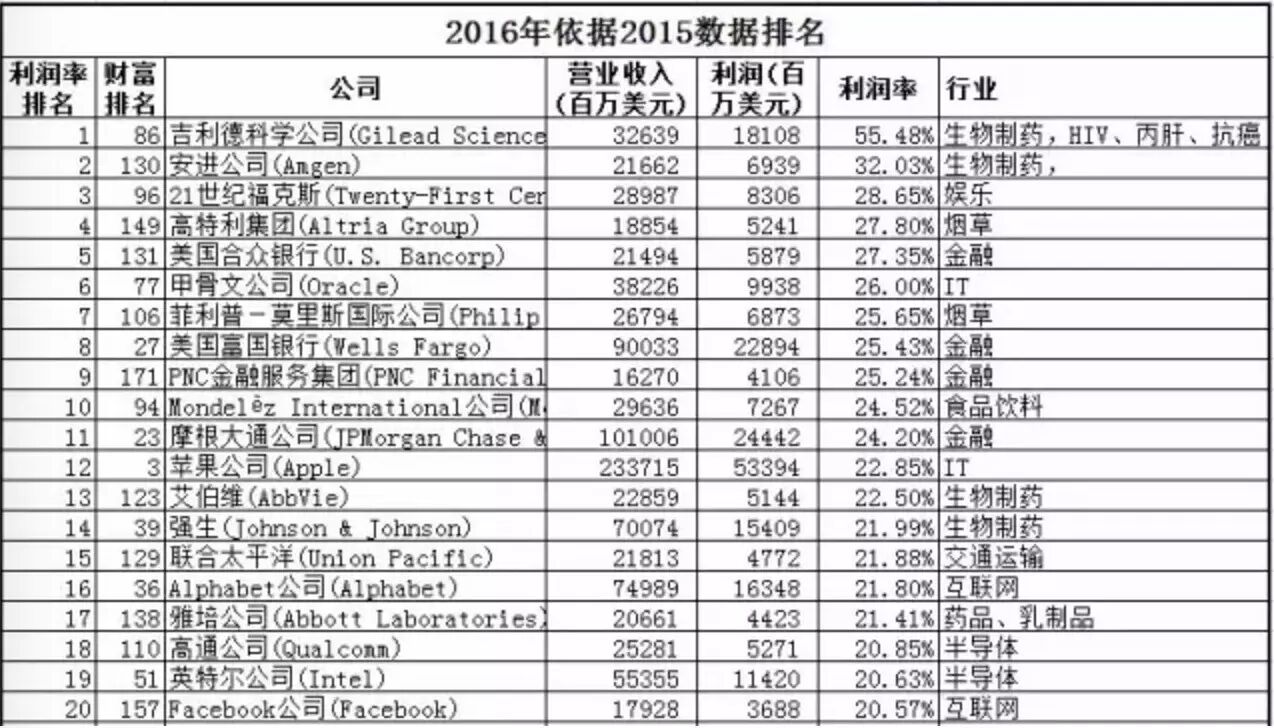 在刚刚出炉的『美国财富500强』企业中,以下是利润率最高的企业排名,在这个排行榜中,Oracle公司以利润率26%高居第六位,在500强企业中,甲骨文公司的排名是第77位。在这个『利润率排名』榜上,IT公司里Oracle位居第一,还在苹果之上。