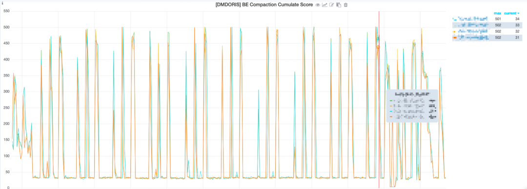 通过审计日志发现,版本数的变化曲线与 Doris Stream Load 导入频率变化曲线一致,所以 Cumulate Compaction Score 过高是 Stream Load 导入频次过高引起。经过和业务的沟通,确定了 Load 参数如下: