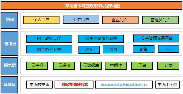 在某地级市智慧政务云项目中,采用全栈云服务解决方案搭建并交付多样化IaaS和PaaS云产品,结合银河麒麟高级服务器操作系统V10的深度定制,满足了客户在安全性等方面的硬性要求,承载了各类政务应用系统安全稳定运行。
