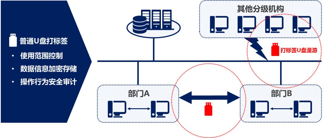 通过移动存储与安全U盘管理,满足生产网、办公网、互联网的交互工作安全要求。