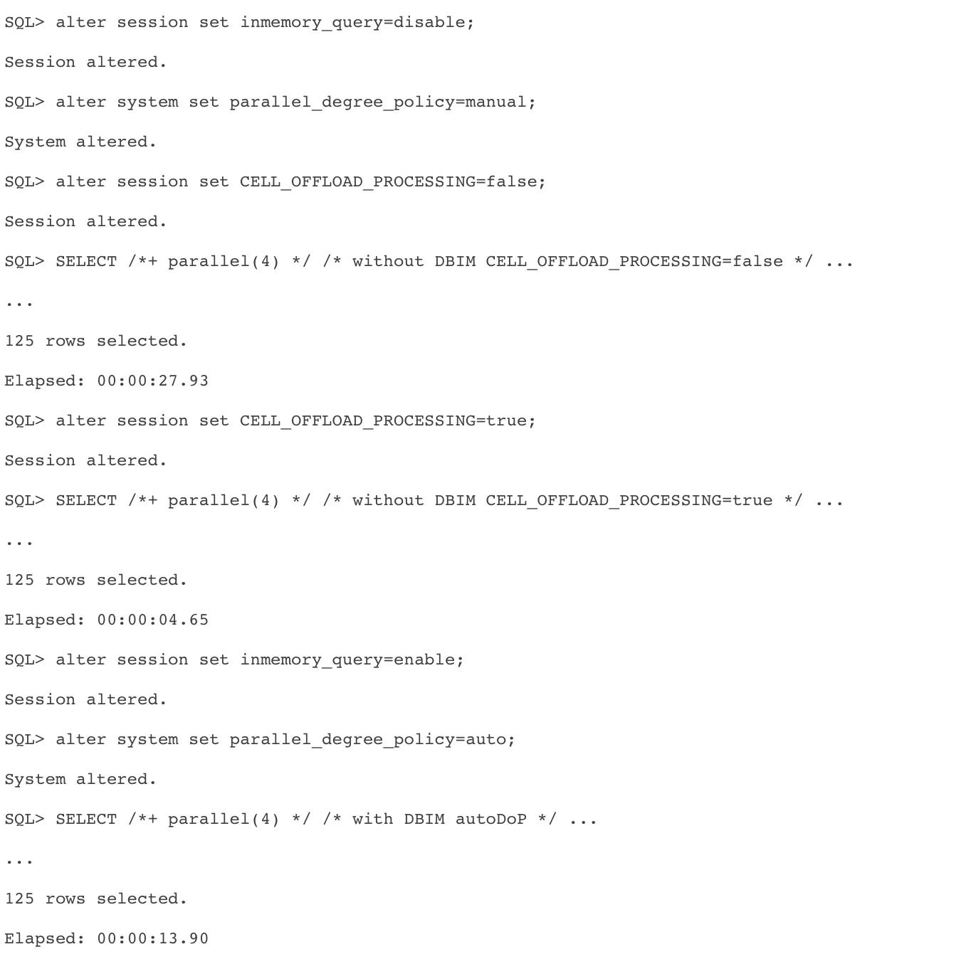 我们执行三次查询,对比不使用 Smart Scan、使用 Smart Scan 和使用 IMC 查询时的性能。