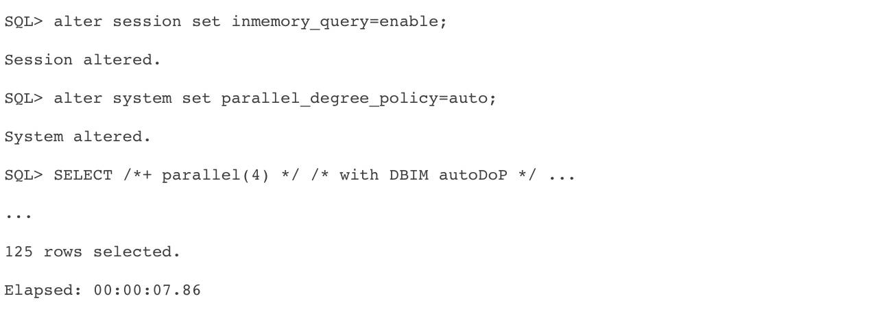 SQL 的估算的执行时间超过 parallel_min_time_threshhold。(如果查询所有的表都已经加载到 DBIM 列式存储中,则 threshhold 为 _parallel_inmemory_min_time_threshold)。