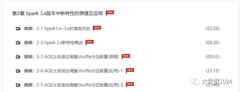 注意:针对自适应调整Shuffle分区数量的实战案例演示,请到课程中查看最新更新的内容,如下图所示: