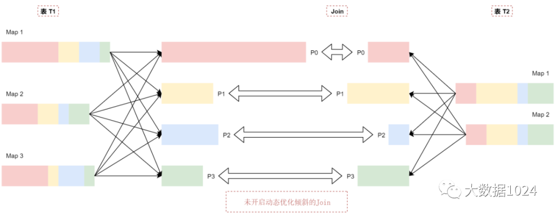 当t1和t2表中p1、p2、p3这几个分区在join的时候基本上是不会出现数据倾斜的,因为这些分区的数据相对适中。但是P0分区在进行join的时候就会出现数据倾斜了,这样会导致join的时间过长。
