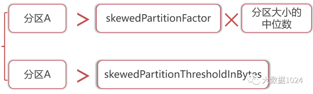 如果Shuffle中的一个分区的大小大于skewedPartitionFactor这个因子乘以Shuffle分区中位数的值,并且这个分区也大于skewedPartitionThresholdInBytes这个参数的值,则认为这个分区是倾斜的。