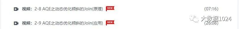 注意:针对动态优化倾斜的Join的实战案例演示,请到课程中查看最新更新的内容,如下图所示: