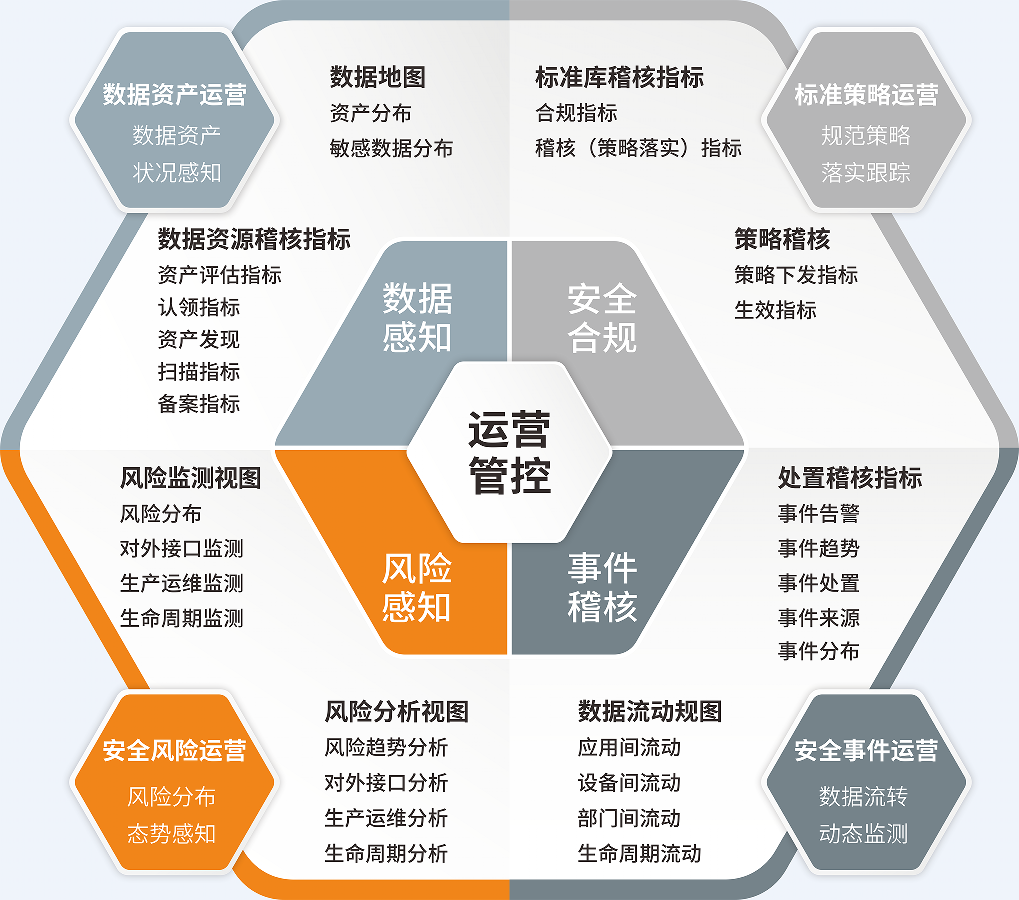 以“可实用、可持续”为设计初衷,“一站式、体系化”的数据安全运营管控平台。可集合包括数据资产梳理、数据库防火墙、数据库审计、数据脱敏、数据库运维管理、数据库加密等在内的各类数据安全产品优势于一身,通过可视化的信息呈现与工作引导,真正实现“统一部署、统一监控、统一管理、统一运营”的数据安全日常化、可持续的运营管控目标。