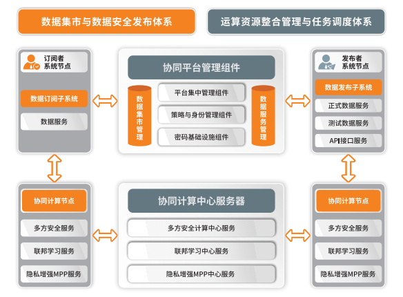 基于隐私计算技术,推出以多方安全计算(MPC)、联邦学习(FL)等隐私数据保护技术为核心的数据安全协同平台,保障敏感数据的“可用不可见”,提供数据使用的“可控、可计量”。平台在隐私计算的基础上,着力于构建具备安全、合规及生态能力的数据共享、研究、利用及交易平台;在提供数据安全共享利用的基础上,更加强调数据发布、研究和利用的自然发展过程,构建数据发布者、数据订阅者和平台提供者的数据共享和交易生态,并通过数据主题与数据集市促进数据协同利用生态的发展。