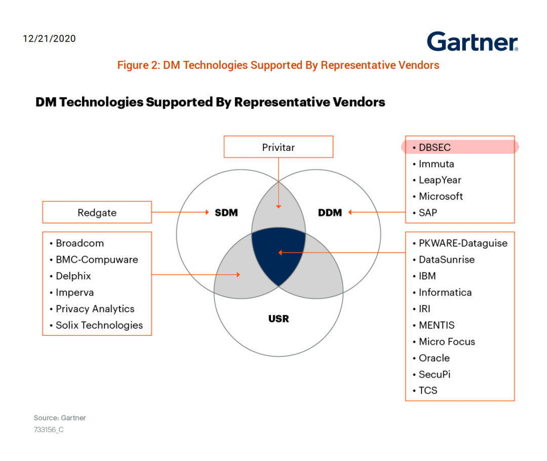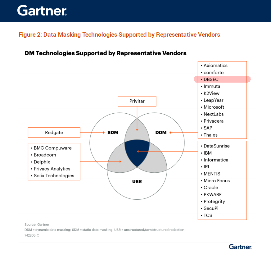 2020-2021,安华金和连续两年进入Gartner 发布的 Market Guide for Data Masking(数据脱敏市场指南),跻身数据脱敏领域全球代表厂商行列,同时也是该领域代表厂商中唯一的中国数据安全企业,与IBM、Microsoft、Oracle、SAP等国际知名厂商一同由Gartner面向其全球客户进行品牌及产品推荐。